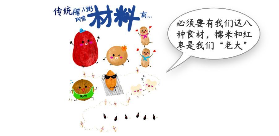 广式“腊八粥”原料:大米/小米 (两者选其一)50克、红小豆100克、黑米/红米50克、花生米100克、白扁豆/薏米50克、燕麦20克、糯米/粘高粱米50克、莲子50克、红枣去核5-10颗、桂圆50克、水与原料的比例约为5:1(以上为3-4人份量)。