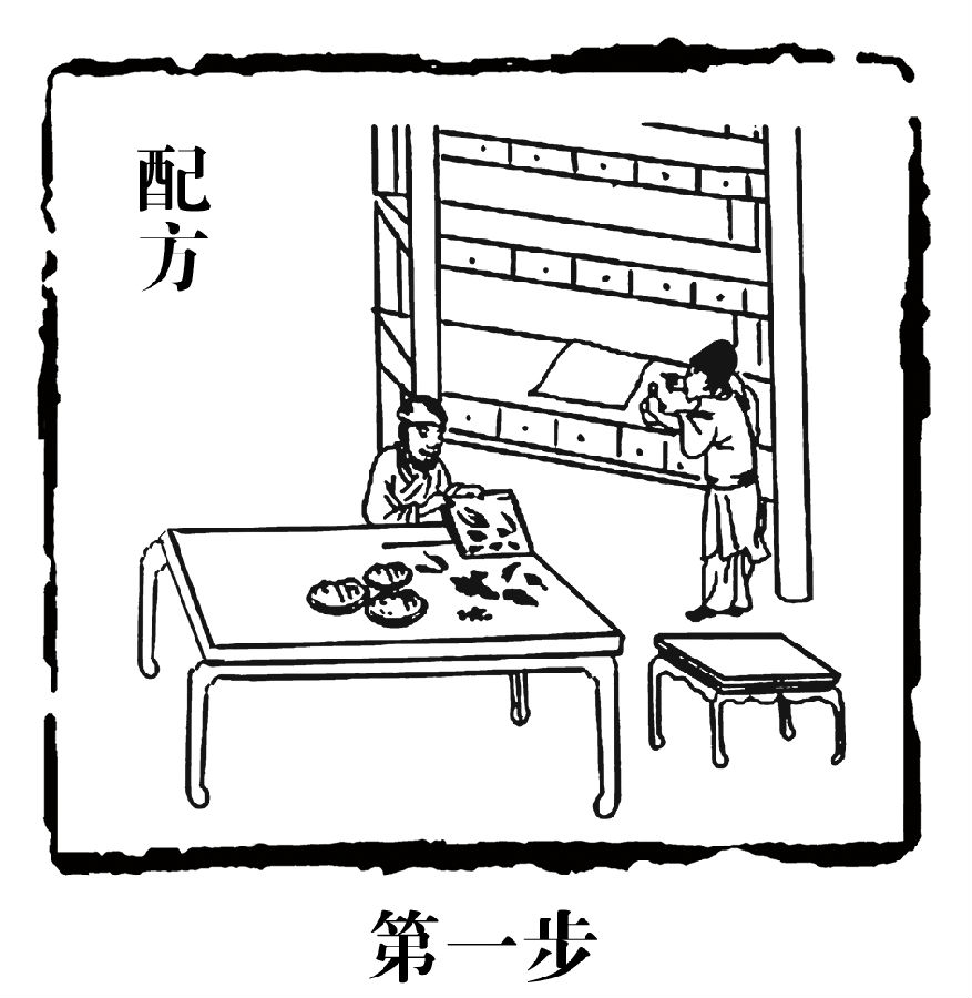3、提取:把浸泡后的药料上火煎煮。先用大火煮沸,再用小火煮1小时左右,转为微火以沸为度,约3小时左右,此时药汁渐浓,即可用纱布过滤出头道药汁,再加清水浸润原来的药渣后即可上火煎煮,煎法同前,此为二煎,待至第三煎时,气味已淡薄,滤净药汁后即将药渣倒弃(如药汁尚浓时,还可再煎1次)。将前三煎所得药汁混合一处,静置后再沉淀过滤,以药渣愈少愈佳。