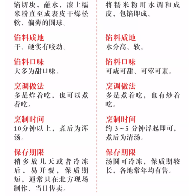 自古就有正月十五吃汤圆的风俗,北方"滚"元宵,南方"包"汤圆,元宵和汤圆在原料、外形上相似,但其实是做法和口感都不同的两种食品。目前市场的汤圆、元宵馅料品种繁多,常见的甜味馅料有豆沙、花生、芝麻、巧克力、玫瑰、山楂、榴莲等,常见的咸味馅料有肉、鱼、蛋、菜等品种。吃法上也有多种方式,例如水煮、油炸、笼蒸、箱烤、拔丝等。