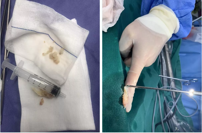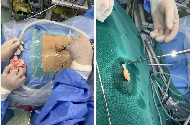 何升华主任所带领的脊柱微创团队经过仔细斟酌和讨论后,最后决定大胆尝试经椎板间入路在脊柱内镜下取出腰4-5极重度脱垂型髓核组织。