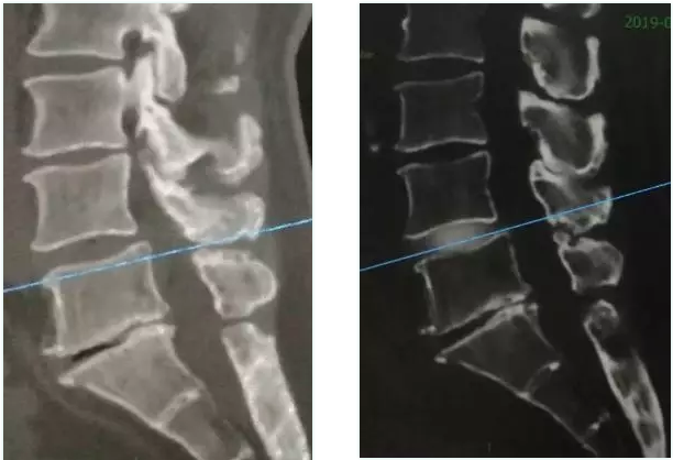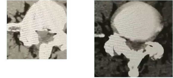 术前(左)术后(右)对比显示,游离髓核组织取出干净