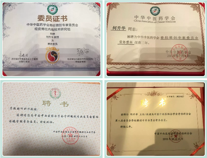 经过长期的临床实践,何主任成功开展了椎间孔镜治疗下腰椎中央型腰椎间盘突出症、下腰椎旁中央型腰椎间盘突出症、下腰椎椎间孔型腰椎间盘突出症、高位脱出腰椎间盘突出症、复发性腰椎间盘突出症、青少年腰椎间盘突出症、多节段腰椎间盘突出症,经皮脊柱内镜精准减压治疗退变性腰椎管狭窄症,前后成功完成椎间孔镜手术超过5000多台,积累了丰富的手术经验。