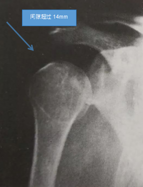 (1)X线检查:肩正位片显示肩峰与肱骨头间隙超过14mm,或两侧间隙之差>10mm。