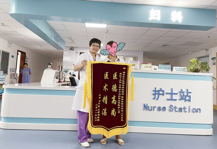 巨大宫颈肌瘤由于其位置的特殊性,临床处理起来相对困难和棘手,与传统开腹肌瘤剔除术相比,腹腔镜下巨大宫颈肌瘤剔除更加考验术者的腔镜手术技巧、解剖知识及团队协作能力,我结合自身的技术能力、该院的器械条件以及团队的手术基础,成功开展首例腹腔镜下巨大宫颈肌瘤剔除术,推进该院医疗技术水平踏上新台阶,得到了患者及妇科同道的认可。患者术后检查膀胱及输尿管均无损伤,术后患者恢复快顺利出院,患者及其家属感激不尽,送来锦旗。
