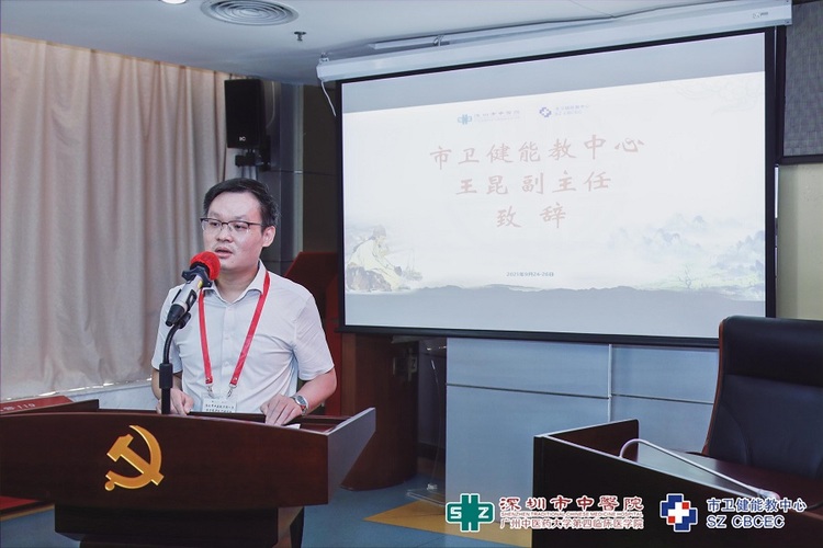 市卫健能教中心王昆副主任在开班仪式上致辞。他表示,能教中心对于此次培训班高度重视,经双方多次研讨精心制定了培训内容。他指出,临床护理工作者大多缺乏必要的、系统的、综合能力的培训。深圳市中医院举办本次培训,正是贴合临床护理工作需求、切合医院发展迫切需要的。市卫健能教中心也必将“我市护理人员培养体系的创新发展”作为重点工作推进,通过开展丰富的教学,帮助学员提升职业素养和综合能力,助力医院培养优秀护理骨干,强化人才支撑和储备。同时,希望学员们学有所成,在此后工作中学以致用!