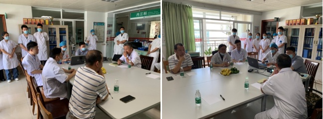 联盟专家团在三亚市中医院脾胃病科开展了查房和疑难病例讨论,童光东理事长、杨永和副理事长、邢宇锋副理事长兼秘书长、蔡乃亮主任、韩志毅秘书参加了查房和疑难病例讨论,三亚市中医院脾胃病科赵炜组织全科医护人员参加。