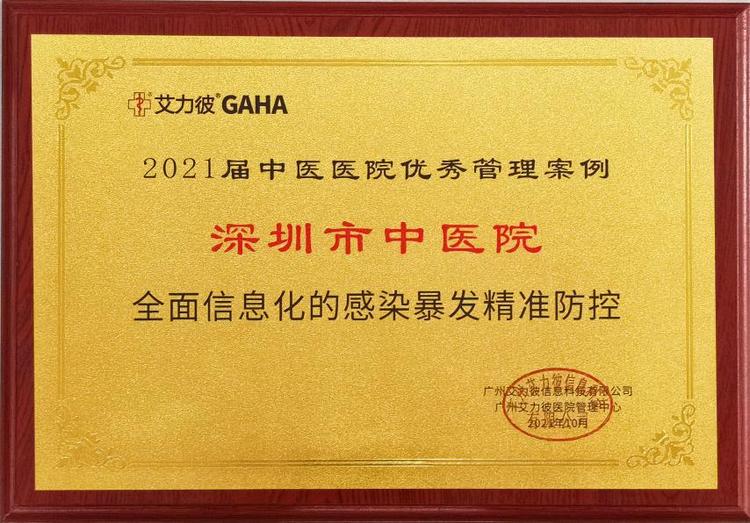 10月23日,中国医院协会中医医院分会第七届年会暨2021中医医院院长论坛在广州举行。深圳市中医院的医院感染管理案例——《全面信息化的感染暴发精准防控》经过两轮专家评审,从全国中医医院参赛案例中脱颖而出,被评为“2021届中国中医医院优秀管理案例”。
