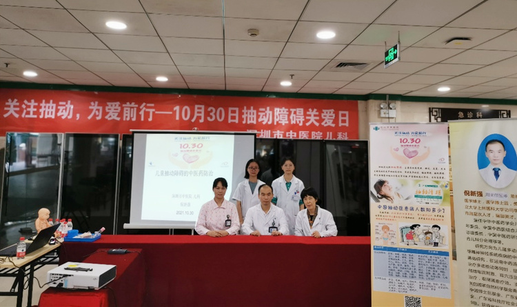 2021年10月30日为我国第二届“抽动障碍关爱日”,今年的主题是“关注抽动,为爱前行”。为响应中国抽动障碍协作组倡议,同时为推进中医药在儿童抽动症防治中的应用,10月30日上午9:30至11:00,深圳市中医院儿科在医院二门诊1楼门诊大厅开展宣教、义诊活动。胥丹桂主任医师、倪新强副主任医师、张珂护师等参加了此次活动。