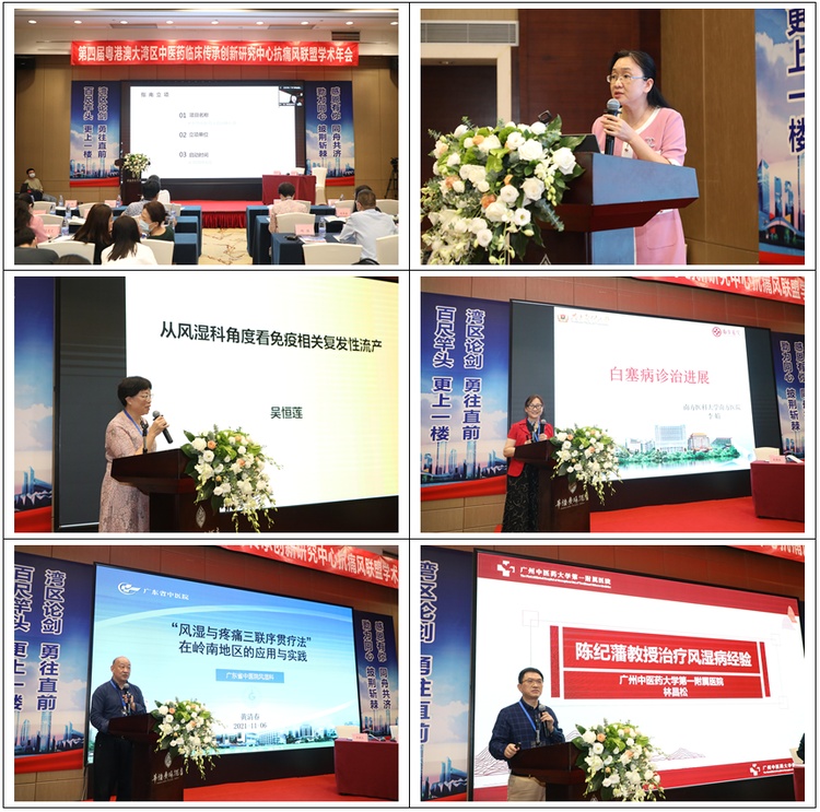 姜泉教授推出纤维肌痛综合征诊疗指南(草案);苏友新教授提出痛风相关基础与临床若干问题的思考;吴恒莲教授分享免疫相关复发性流产的妊娠管理;王庆文教授介绍类风湿关节炎治疗与研究进展;李娟教授概述白塞病的诊治进展;黄清春教授分享正清风痛宁三联序贯疗法在岭南地区的应用与实践;林昌松教授介绍陈纪藩教授学术经验;刘冬舟教授概述风湿病的血液系统表现;对于生物制剂在类风湿关节炎合并结核感染的应用策略梅轶芳教授给出可行性方案;黄慈波教授简要解读风湿免疫性疾病诊治的今日与未来;王彬彬研究员在会上就基于精准医学的抗痛风中医药研究做报告;李泽光教授阐释从中医维度治疗骨质疏松;刘英教授对干燥综合征病证结合治疗进行详细阐述;张海波教授分享经方论治痛风病思路的研究与探讨;刘维教授分享中西合璧话干燥;杜惠兰教授介绍免疫型复发性流产的中医治疗;郑福增教授分享国医大师朱良春治疗痛风的经验;何东仪教授分享痛风的真实世界研究成果;张华东教授对王清任多维逐瘀类组方规律进行探析;马武开教授分享风湿病学科建设经验;陈盛教授概述系统性红斑狼疮合并感染的治疗思路;最后,唐晓颇教授阐述古法新用治疗白塞病。