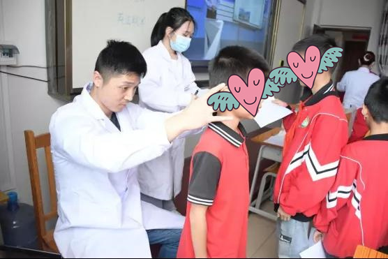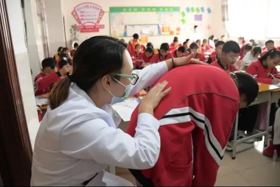 培训结束后,医疗队员分为三组,分别为四年级组、五年级组和六年级组的学生们进行脊柱侧弯筛查。在筛查过程中,医生们按照特殊的筛查手法逐个为学生们查看脊柱情况,学生们也积极配合,该低头低头,该弯腰弯腰,检查过程快速且有序。