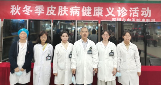 2021年11月15日下午,深圳市中医院皮肤科举行了一场关于秋冬季皮肤病的健康义诊活动。皮肤科杨玉峰主任、赖旻副主任医师及4位青年医师为来院就诊患者及患者家属就秋冬季皮肤病进行健康咨询和相关疾病的诊治与解答。