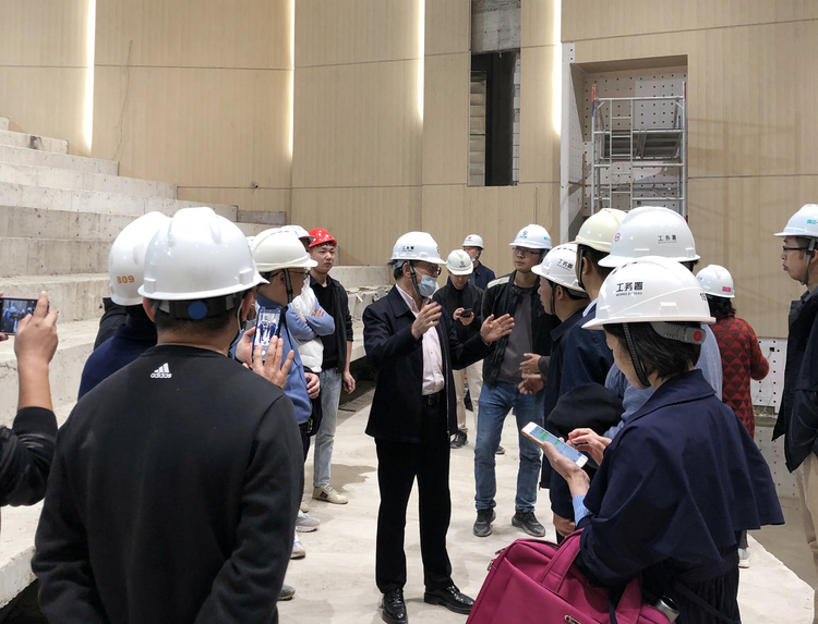 在随后的座谈交流会上,施工方就770人会议厅舞台幕布的设计方案进行了汇总报告,经过多方讨论,初步确定了幕布的数量以及颜色。
