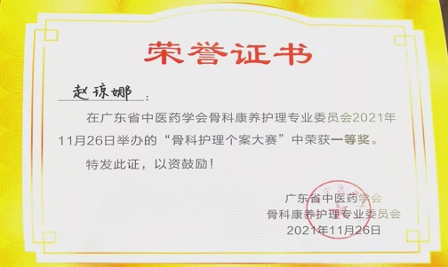 骨伤科二病区在广东省中医药学会骨科康养护理专业委员会举办的骨科护理个案大赛中荣获一等奖