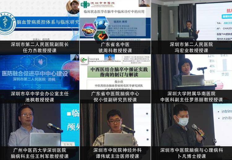 会上,多位国内著名专家为大会带来了精彩的专题讲座。深圳市第二人民医院副院长任力杰主任对卒中医疗质量与临床研究做了详细汇报;广东省名中医、深圳市脑病与心理病科主任虢周科教授深入讲解了临床状态医学在脑卒中中临床诊疗的应用;深圳市第二人民医院冯宏业主任医师分享了脑卒中抗栓药物的临床使用;深圳市卒中学会办公室主任池枫主任对医防融合促进卒中防治体系建设进行了分析讲解;广东省中医院脑病中心倪小佳副研究员对“中西医结合脑卒中循证实践指南的制定与解读”进行了讲解;深圳大学附属华南医院中医科副主任罗恩丽研究员讲述了“向管理要疗效--脑卒中二级预防的全程管理”这一主题;广州中医药大学深圳医院脑病科主任王利军副教授分享了脑供血动脉夹层的诊治新进展;深圳市中医院神经外科谭伟斌主治医师讲解了椎基底动脉狭窄的介入治疗;深圳市中医院脑病与心理病科卜凡博士阐述了Racl在脑缺血后组织重构和体功能恢复中的作用。随后,秦秀德主任对《2021年欧洲急性脑梗死指南》进行了详细解读。