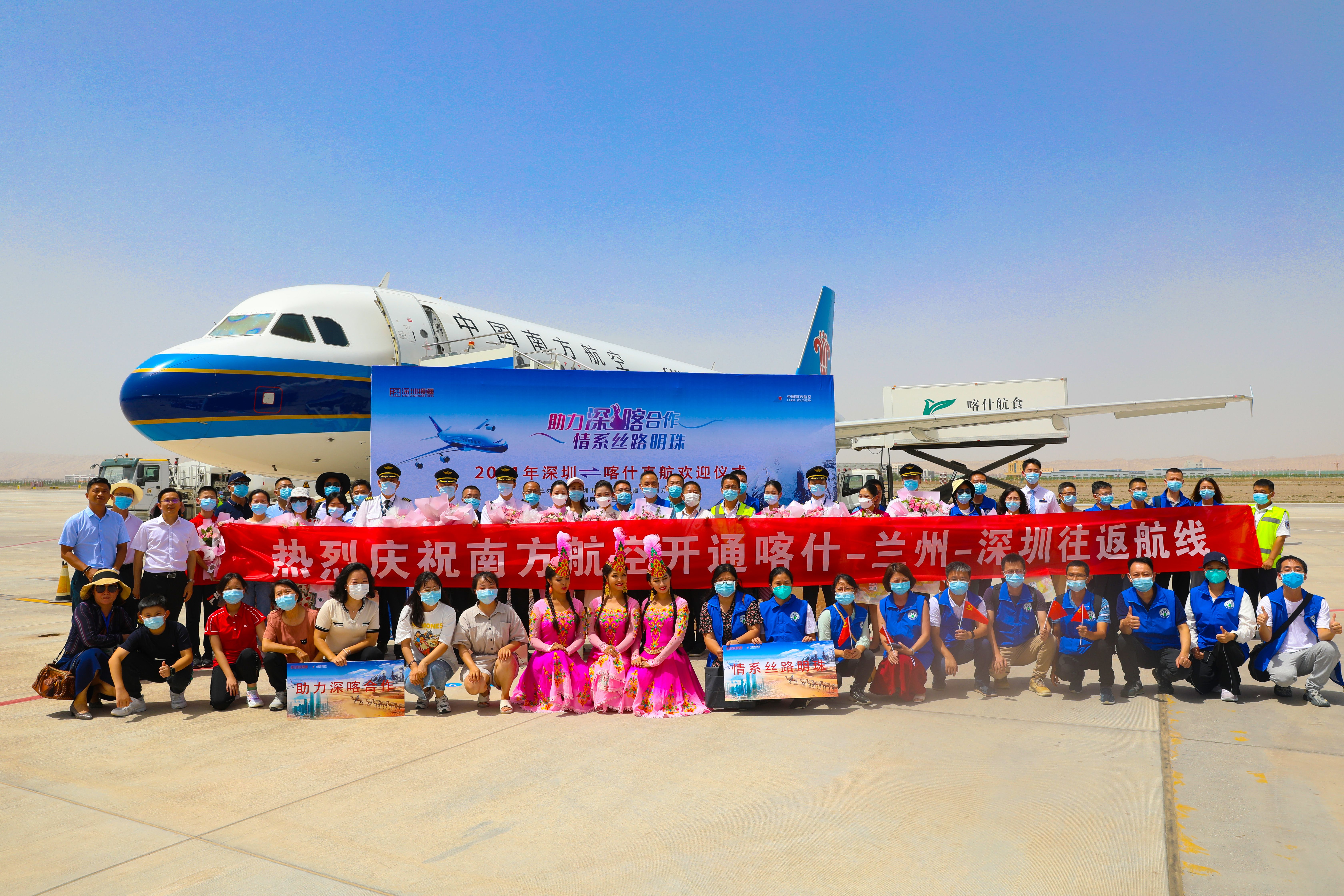 2020年7月29日15时35分,由深圳宝安国际机场飞往新疆喀什国际机场的空客A320型客机平稳着陆,标志着深圳至喀什航线正式开通。来自深圳的柔性援疆医生、商务人士、游客等136名首批乘客顺利抵达喀什,为深圳、喀什两地人民架起一条便捷的空中丝绸之路。深圳至喀什航线的开通,是深喀两地交往交流交融的一个缩影。