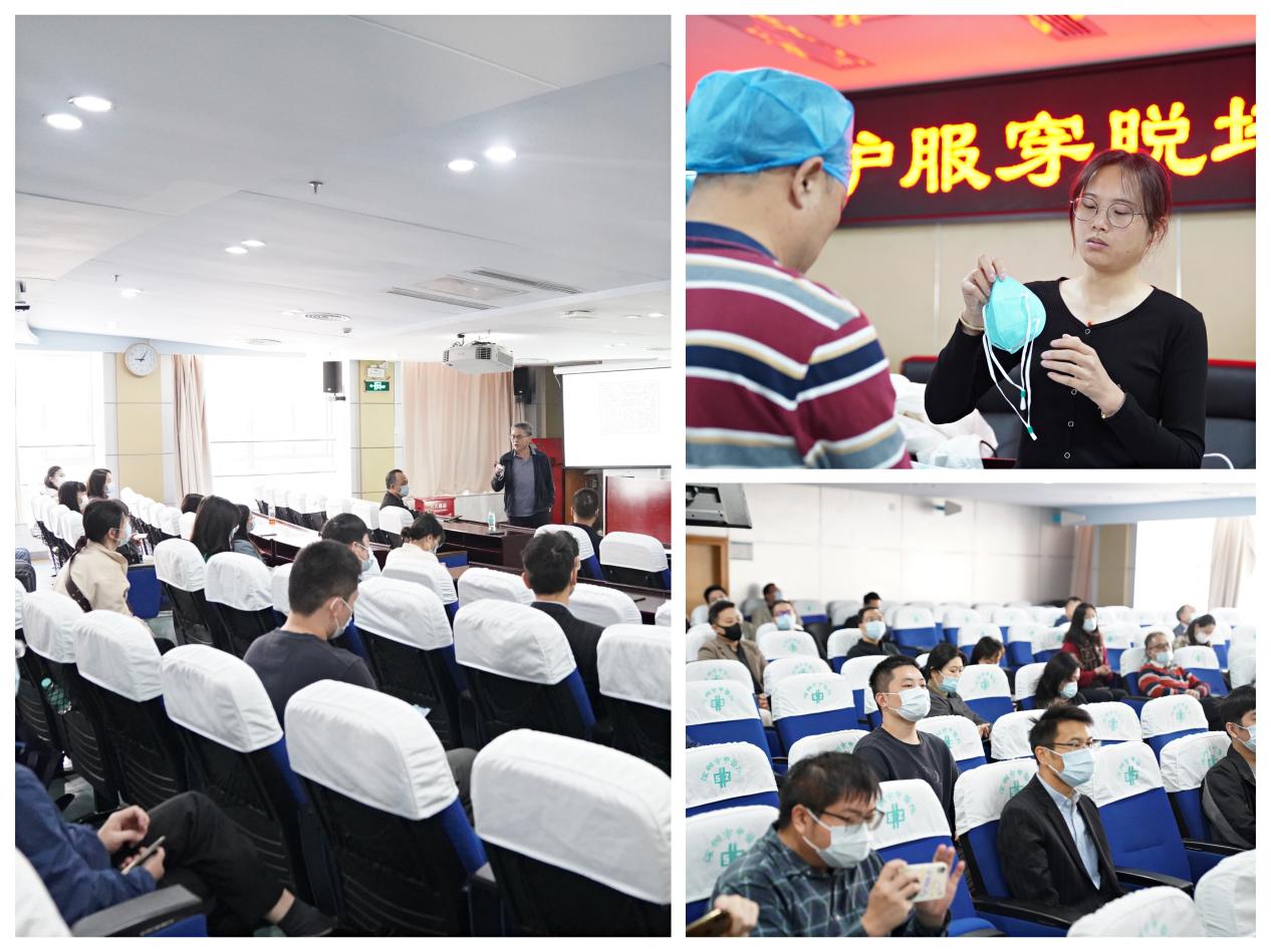 本次培训分上、下午两场,邀请了曾出战武汉雷神山的急诊科副主任刘禹翔、感染性疾病科负责人刘磊为学员们讲解核酸采样现场工作设置、扫码采样流程、防护服穿脱要点等内容。学员们认真学习、仔细记录,并逐一在现场进行了防护服穿脱演练,以时刻准备奔赴一线的决心,用心打磨自身核酸采样能力技术,为全院疫情防控工作贡献力量。