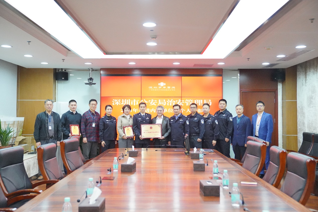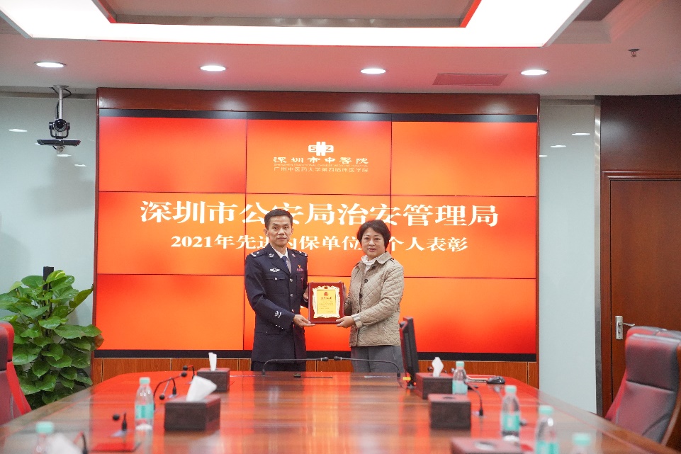 根据《深圳市公安局关于表彰2021年度全市内部治安保卫工作先进集体和先进个人的通报》(深公(治)字〔2022〕91号),深圳市中医院被评为深圳市“先进保卫组织”,徐明珍副院长被评为“优秀安全责任人”,后勤保卫部李曙光被评为“优秀治安保卫干部”。