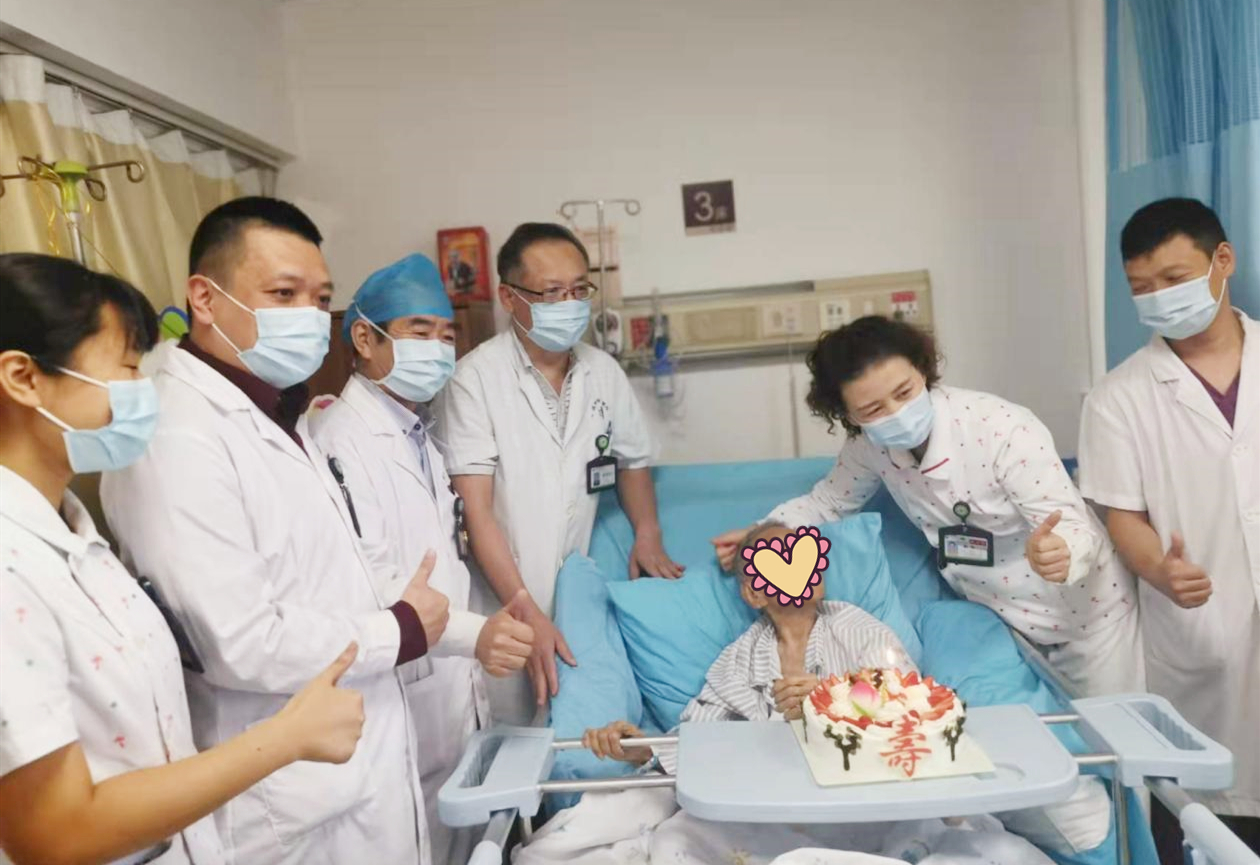 这是一位106岁高龄的老人,每次看到我们都会紧紧地握住我们的手,眼泪汪汪,说很多感谢的话。
