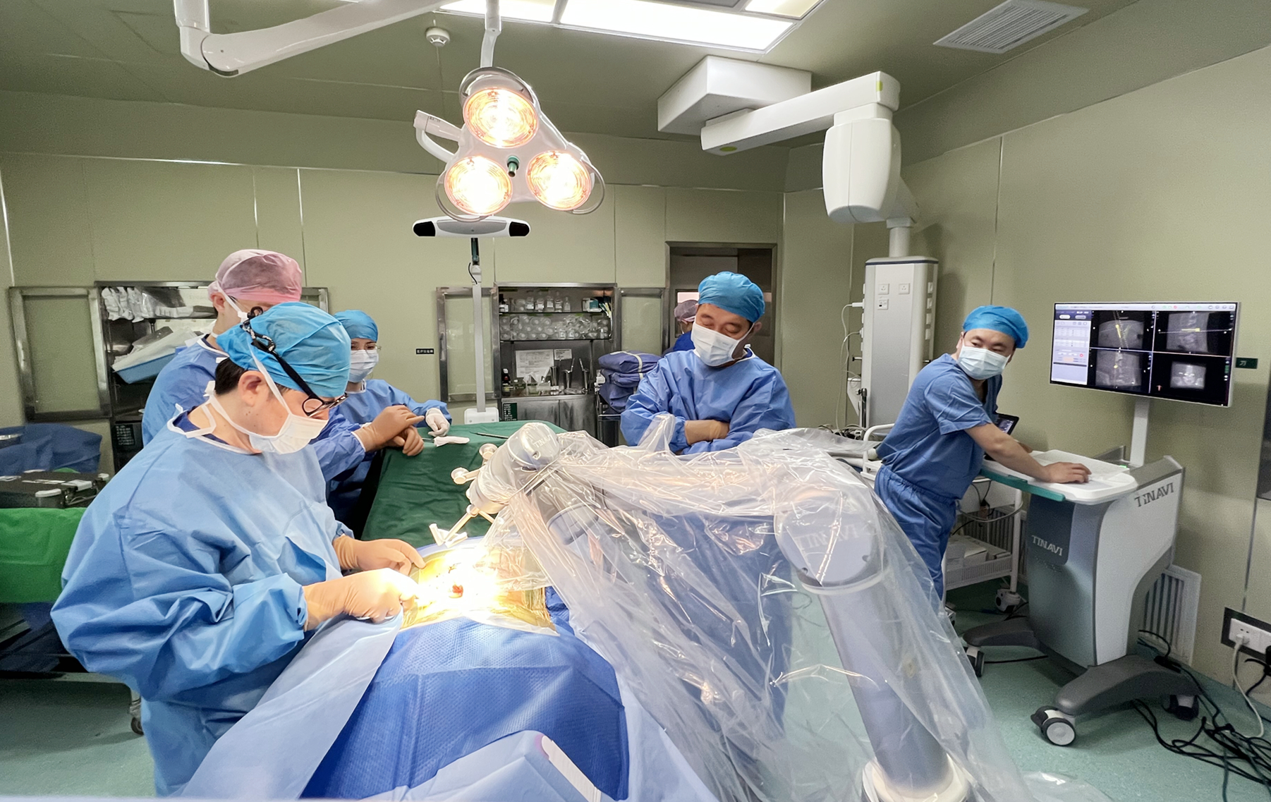 2月16日,深圳市中医院骨伤科何升华主任医师团队在天玑III骨科手术机器人的辅助下,成功完成机器人辅助下“L4/5、L5/S1椎间盘切除椎间植骨融合+经皮椎弓根螺钉内固定术”。