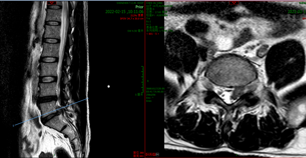 该名患者是44岁男性,反复腰痛20余年,严重时无法翻身活动,夜间更是彻夜难眠,日常工作和生活受到极大影响,求诊于多家医院咨询治疗方案无果,最终慕名求助于深圳市中医院骨伤科何升华教授带领下的脊柱团队。