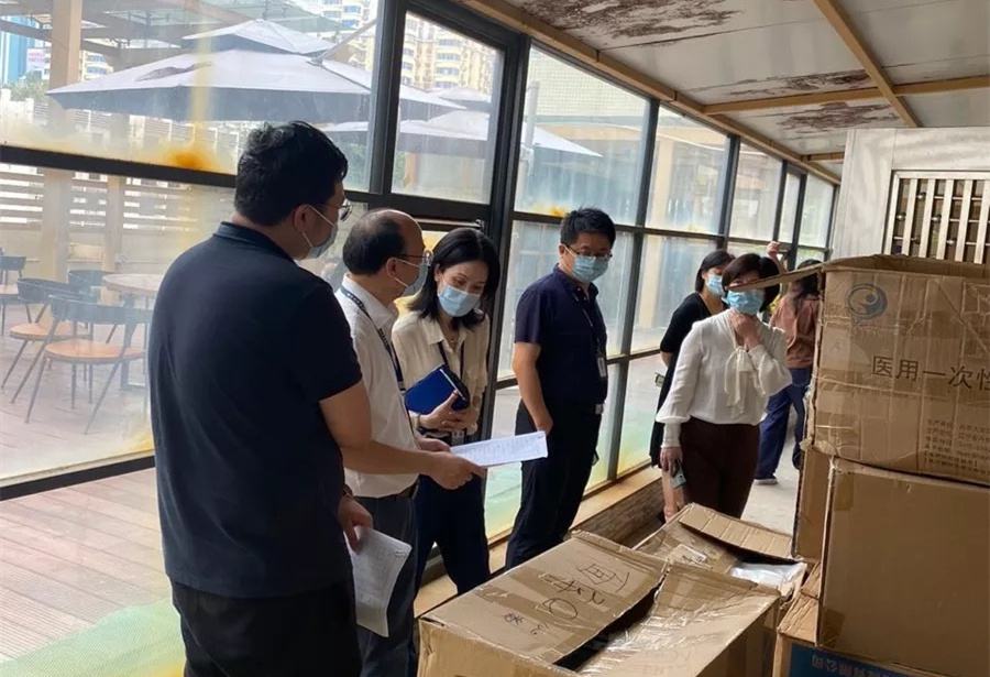 杨曙东副院长一行分别检查了防护服、手术衣、防护口罩、医用外科口罩、速干手消液及消毒湿巾等物资储备情况,并向医学装备部钟晓玲主任及相关工作人员详细询问了深圳市中医院疫情防控物资库存数量、种类、运行机制等情况,还仔细查看了物资出入库登记记录等。