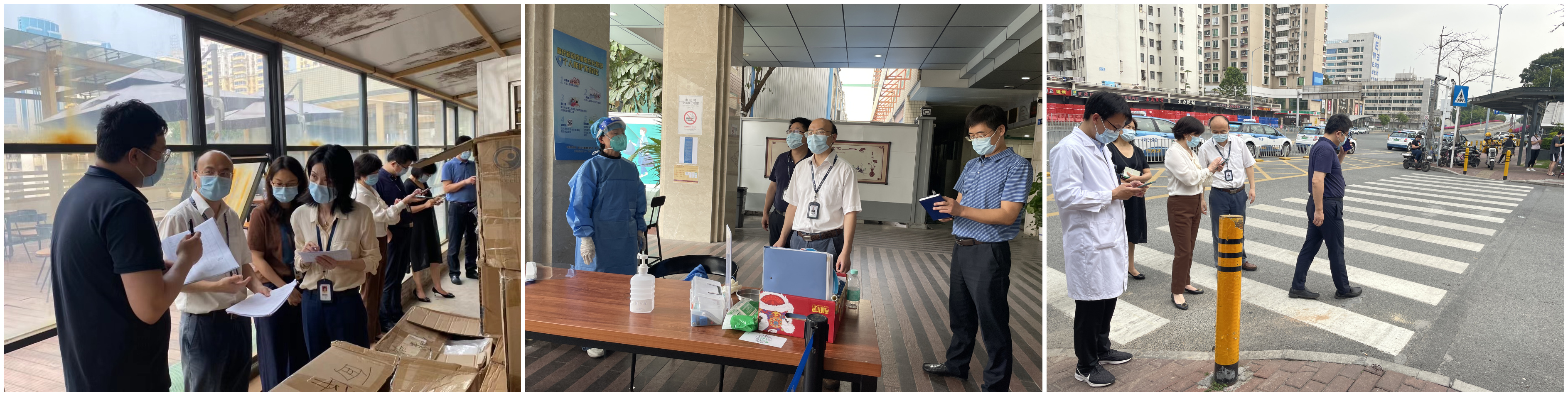 随后,杨曙东副院长一行到福田院区北门和东门现场督导,要求预检分诊人员严格落实“四必查一询问”和健康申报卡等工作要求,并要求各相关部门尽快完善感染性疾病楼独立入院通道设置、标识指引,确保就诊人员有序分流。杨曙东副院长强调,全院职工必须高度重视疫情防控工作,不能有任何松懈与麻痹思想。