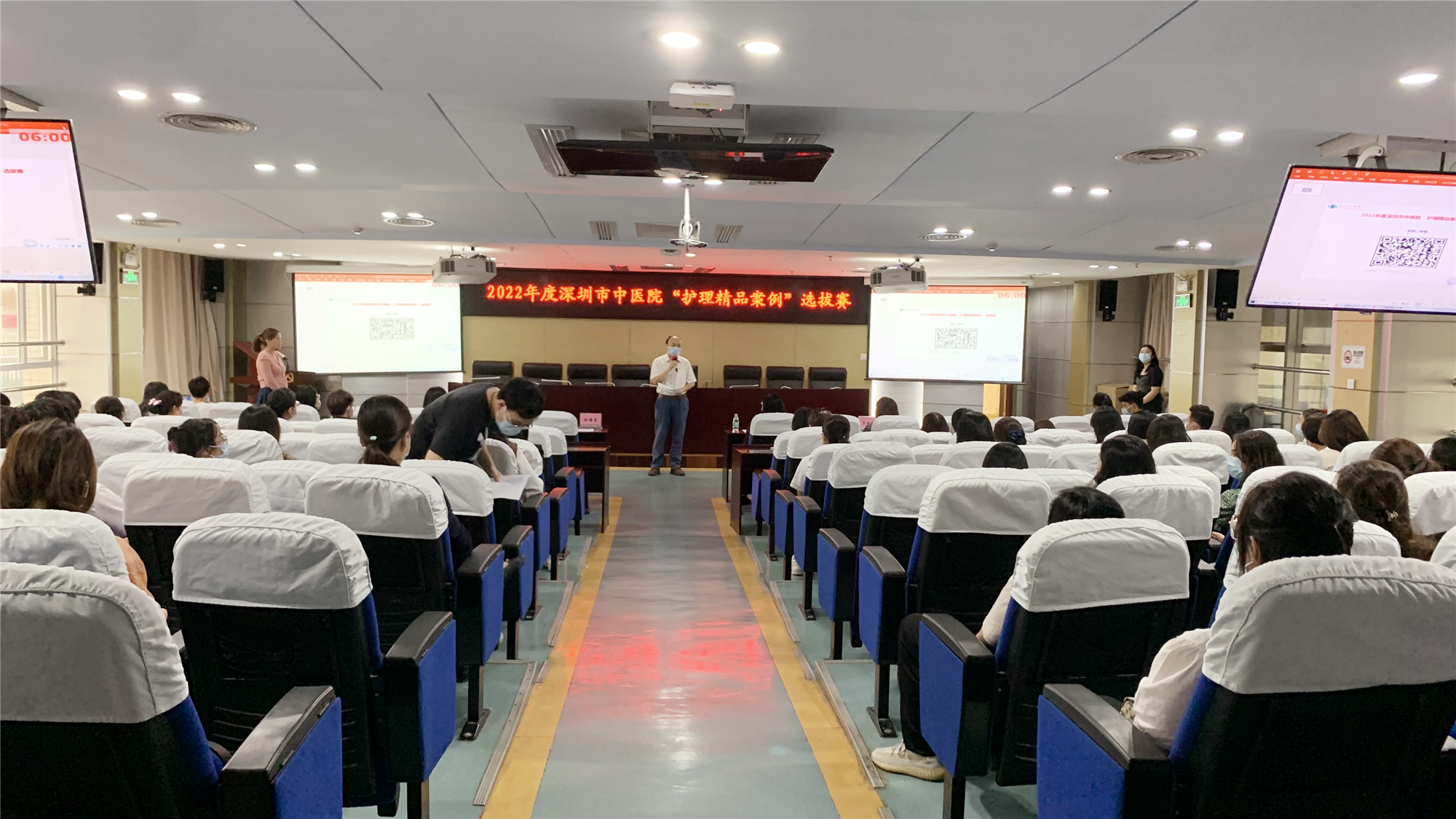 为积极响应深圳市护理学会关于“5.12”护士节征集2022年度“护理精品案例”活动,弘扬南丁格尔精神,展现护理领域的改革和创新,彰显护士在应对各种健康挑战中的风采,2022年4月13日晚18:00,由护理部牵头、医院护理管理委员会-专科护理管理发展委员会组织的护理精品案例选拔赛在医技楼阶梯教室成功举办。
