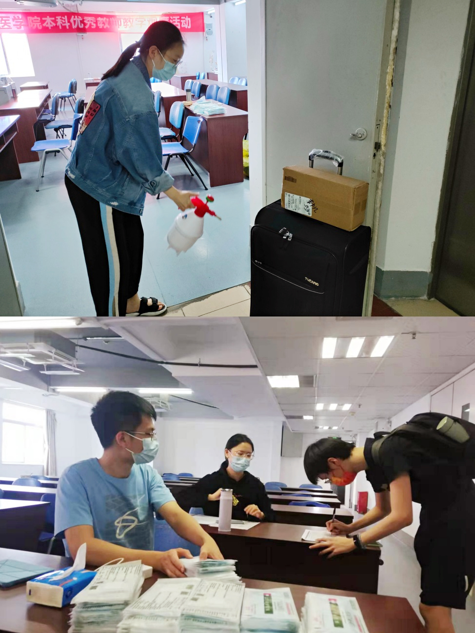为进一步做好春季返校的各项工作,落实疫情常态化防控措施,确保18级、19级学生返校工作平稳有序,学院提前准备了口罩、消毒液、测温枪等防疫物资,安排工作人员对17、18楼教室、走廊和洗手间等公共区域进行了消毒,各班工作人员已提前到达教室,做好开学报到准备工作。