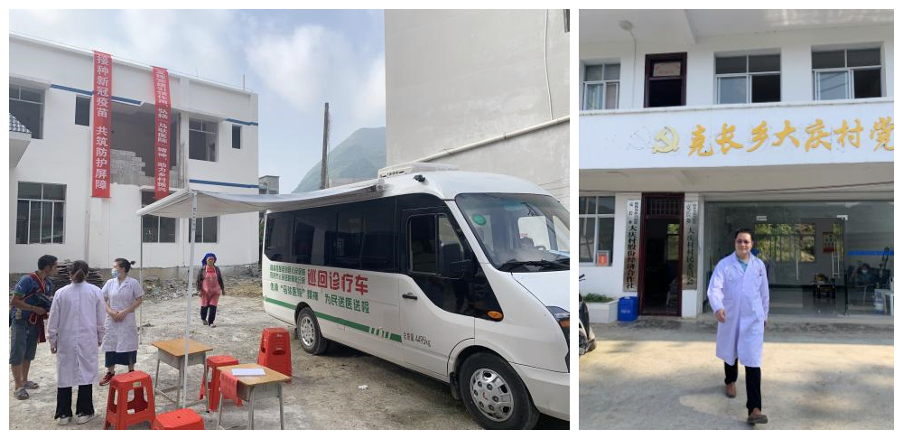 同时,该健康教育行动方案得到当地县卫健局大力支持。2022年4月26日、28日、29日,自治县卫健局韦局长、县人民医院黄培宁执行院长亲自带队,隆林各族自治县人民医院组织医务人员到克长乡长发街、大庆村、后寨村、梅达村,利用移动DR机免费为克长乡的苗族老年人进行肺结核筛查、抽血开展13种癌症筛查,义诊并送药后,进村入户为行动不便老人接种新冠疫苗。