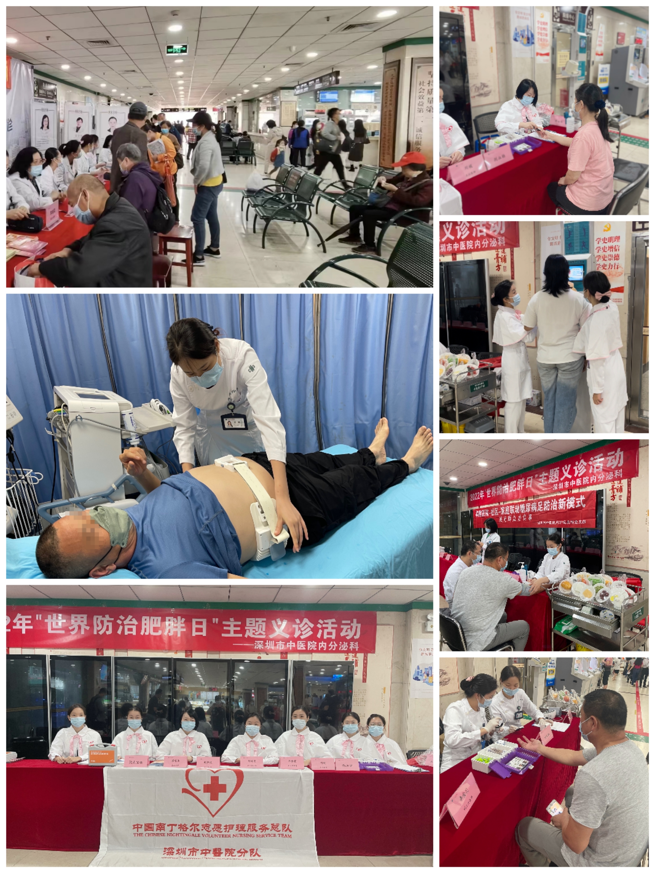 随着人们生活水平的提高,肥胖症在全球范围内迅速流行,肥胖是世界卫生组织确定的十大慢性病之一,已成为全球的公共卫生问题。5月11日是世界防治肥胖日,为提高公众对肥胖危害的关注度,科普科学防治肥胖的方法,倡导养成健康生活方式,提高自身健康水平,5月11日,深圳市中医院内分泌病科在二门诊一楼开展了义诊活动。