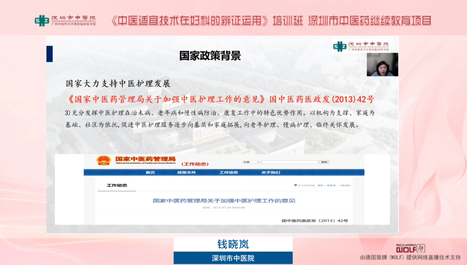 为加快中医护理人才培养,促进中医特色护理技术在临床的广泛应用,进一步推动中医护理的发展,实现中医药发展的“传承精华 守正创新”,根据《中医药发展战略规划纲要(2016-2030)》指导思想,2022年5月22日,由深圳市中医院主办的培训班《中医适宜技术在妇科的辨证运用》(项目编号:202205005)在深圳市中医院医技楼六楼三号会议室开班。本次培训班采用线上线下相结合的方式,现场体验,线上互动,内容丰富实用,受到广大学员欢迎。