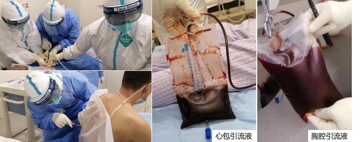 该患者是一名36岁男性患者,因“咽干咽痛、咳嗽咳痰伴喘憋2天,新冠核酸阳性1天”至北京地坛医院治疗。患者“肺腺癌并多发转移”病史3年,曾行化疗,目前靶向治疗中,“肺结核”病史3月,现口服抗痨药物。患者入院后出现呼吸困难、心动过速、血氧饱和度降低、发热、大量心包积液及左侧胸腔大量积液,病情危重,并转入ICU治疗。