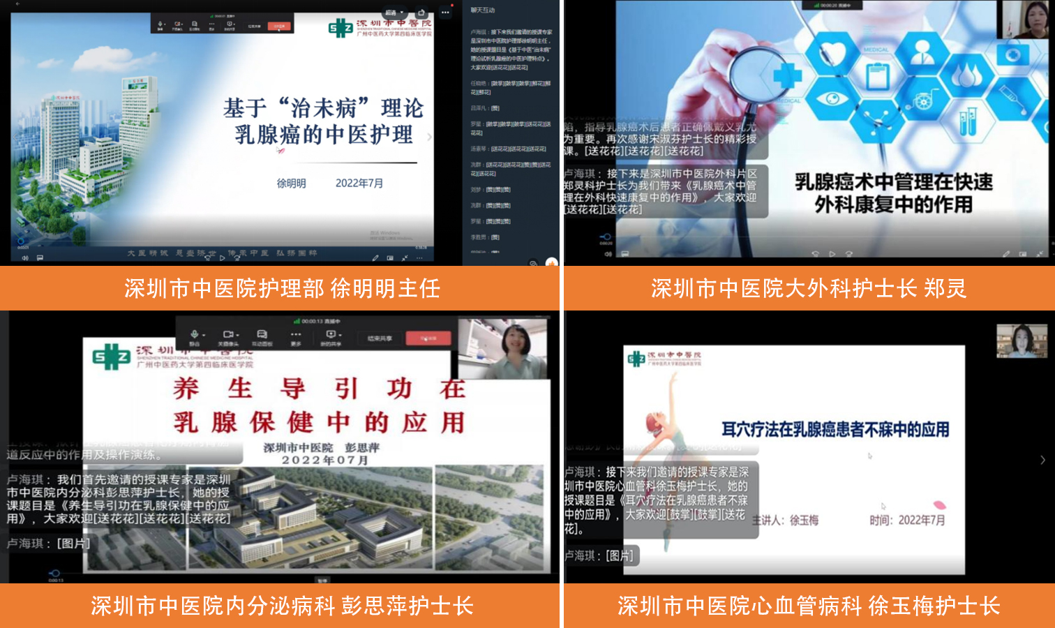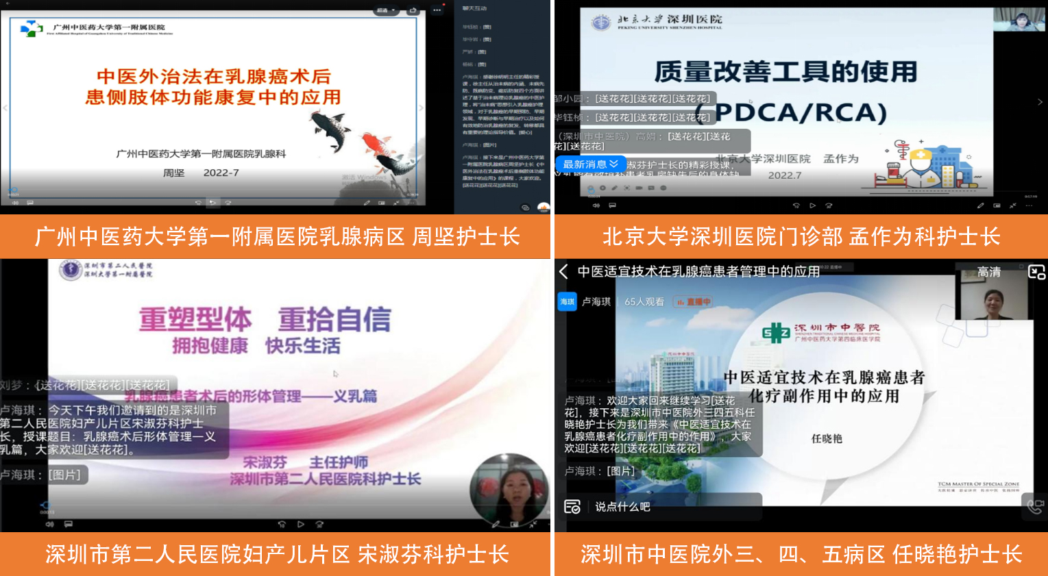 外三、四、五病区李贞贞康复专科护士、汪佳中医专科护士、冼群专科护士也参与此次学习班的授课,旨在交流和推广深圳市中医院乳腺癌中医护理的经验与成果。