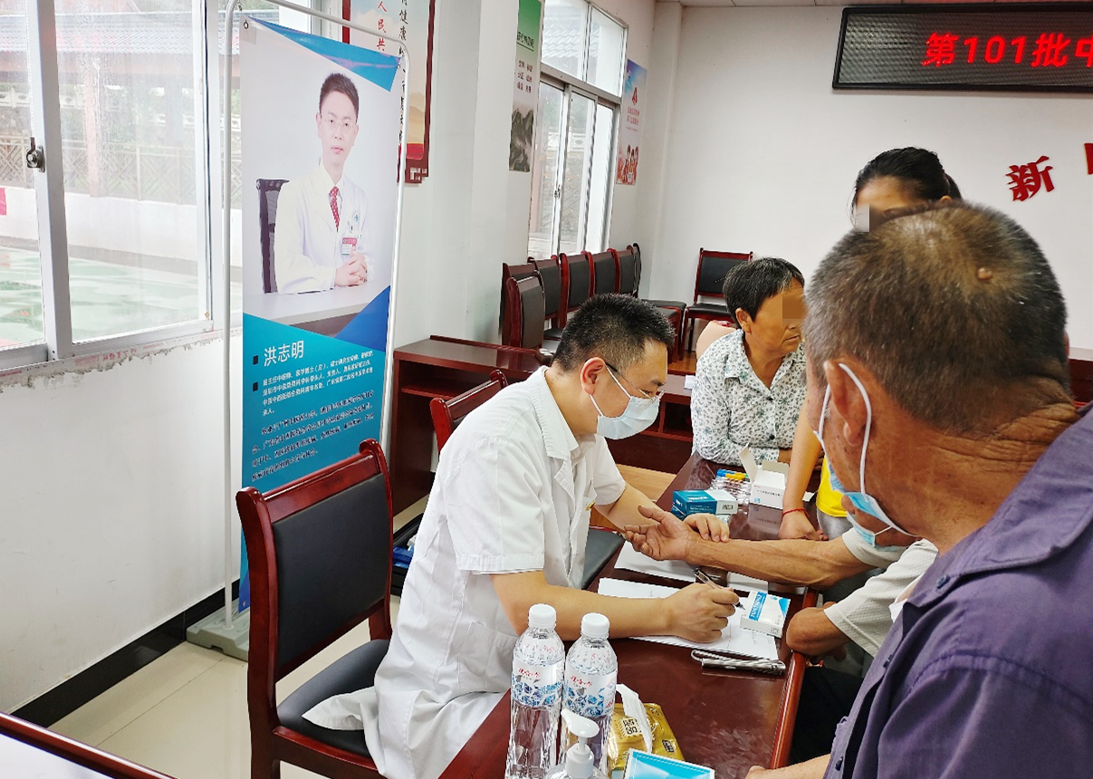 7月20日下午,洪志明博士带队中国中医科学院博士后服务团在金寨县桐岗村文化乐园一楼开展了义诊咨询活动。