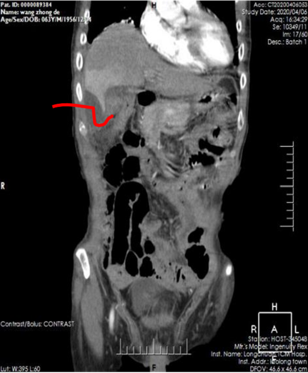 4月4日的河源龙川县风和日丽繁花似锦。因为恰逢清明假期,龙川县中医院外一科住院病人并不多,值班医生正有条不紊地处理着病房的事务。突然,病房短暂的宁静被一阵急促的脚步声和呻吟声打破,一位剧烈右上腹绞痛并体温高达39摄氏度的男性老年患者,被送入了病房。