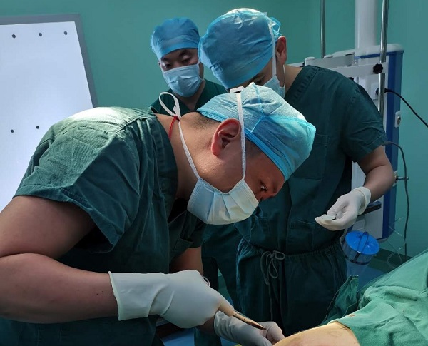 手术方面,先后和受援医院完成全腹腔镜腹内疝手术(大网膜扭转坏死),培训年轻医生在腹腔镜阑尾切除术中,放弃使用器械,转而使用腹腔镜下缝合、打结基本功切除阑尾。龙川属于老龄化城市,压疮,糖尿病足,小腿慢性溃疡等慢性难愈性创面患者偏多,先后与龙川县中医院外一科,骨三科,内分泌科,呼吸科医生协作治疗90岁高龄压疮患者,67岁小腿慢性溃疡、84岁糖尿病足(Wagner分级3级)患者以及腰椎术后伤口不愈合患者,取得较为满意的效果。