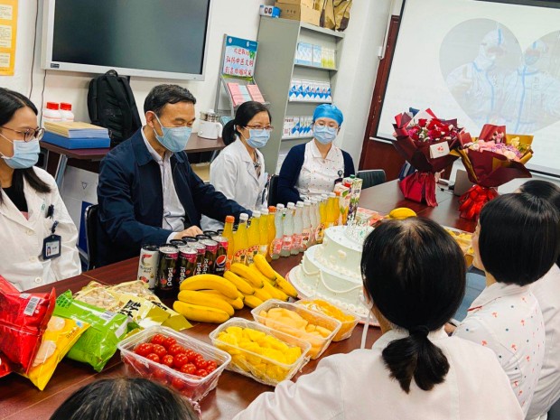 赵恒侠主任充分肯定了科室人员在战“疫”工作中的贡献,亲自筹备并主持了这次欢迎活动,向这些最美逆行者致敬。