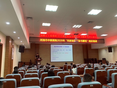 5月20日,河池市中医医院举办“科研选题与标书撰写”知识培训会,深圳市中医院派驻该院的刘新辉博士进行授课。河池市中医医院蒙如庆副院长主持了培训,全院各科室主任、护士长、硕士研究生及中级职称以上医务人员近50人参加了培训学习。