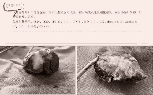 患者因既往有外伤性脾破裂脾切除以及结肠癌根治手术史,腹腔的粘连较重。龙川县中医院外一科手术团队仔细分离腹腔粘连后,明确肝脏癌肿的部位,在距离癌肿旁1cm连部分正常肝组织一并切除,达到R0切除,术后病理提示切缘断端已无癌组织残留,亦即根治性切除。