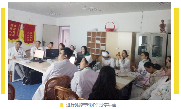 接下来的工作按照计划进行推进。首先,在日常工作中,我与外科主任及医师们一起查房,讨论病情。结合病人病情,将最新的专科知识及前沿进展与之分享。针对当地第一例乳腺癌患者,我们一同进行了问诊、仔细体检及病情沟通,根据患者实际情况,为其行乳腺癌改良根治术。术后结合病理结果及其它因素,制定了全程综合治疗计划(术后予辅助化疗及内分泌治疗,定期随访复查),得到了患者满意评价。