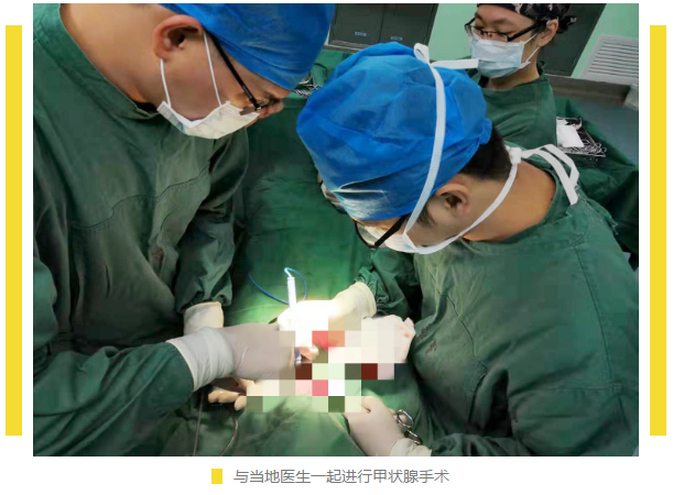 乳腺专科虽为我重点帮扶内容,甲状腺专科的帮扶工作也不能少。帮扶期间,我还进行了十余例甲状腺肿瘤切除手术,两例甲亢手术治疗,多例甲状腺功能异常在门诊进行治疗并随访。同时还指导了两台腮腺肿瘤手术,指导当地科室在手术中进行面神经解剖,避免术后面瘫的风险。