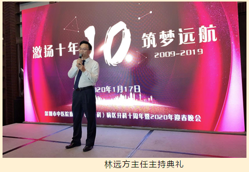 典礼在推拿科林远方主任的主持下进行。首先,林主任回顾了科室十年来的发展历程,向开科主任朱其广教授致以敬意与祝福,向辛勤工作的科室成员表达感谢。