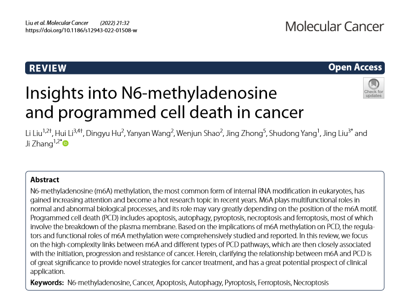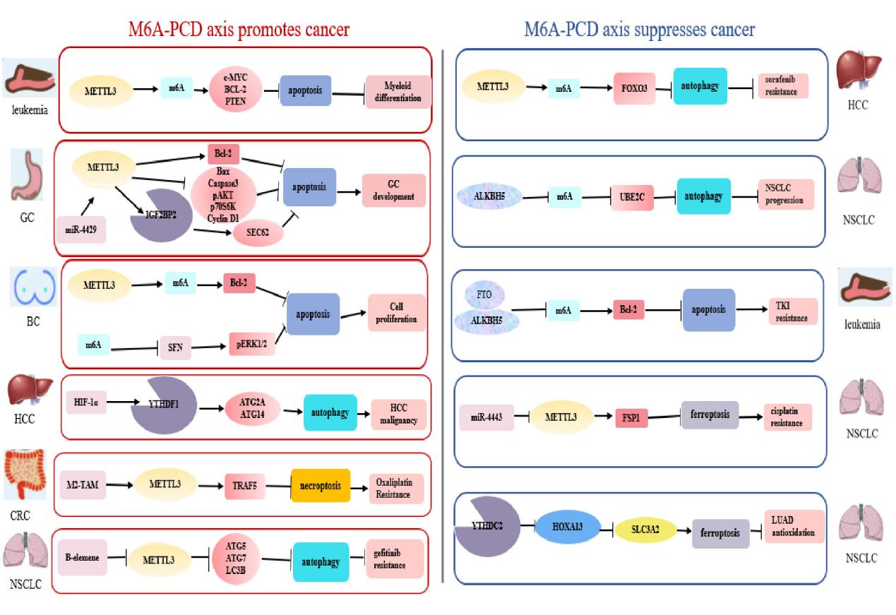 图1. N6-甲基腺嘌呤(m6A)调控肿瘤细胞程序性死亡