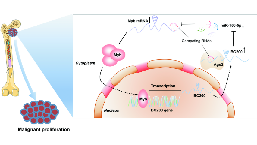 此外,2022年2月8日,生命科学国际著名期刊Cell Death Disease (中科院1区,IF=8.469)也在线发表了该团队的最新研究成果《LncRNABC200/miR-150-5p/MYB positive feedback loop promotes the malignantproliferation of myelodysplastic syndrome》。该研究全面揭示了高表达长链非编码RNA BC200(lncRNA BC200)在MDS(骨髓增生异常综合征)疾病中发挥的原癌基因作用,为解决MDS疾病早期诊断、预后评估及临床治疗提供新视角和治疗策略。本研究为该团队与中南大学生命科学院刘静教授团队的共同完成。中南大学湘雅医院血液科曹鹏飞副教授和南华大学附属第一医院血液科文锋副教授也提供了协助支持。