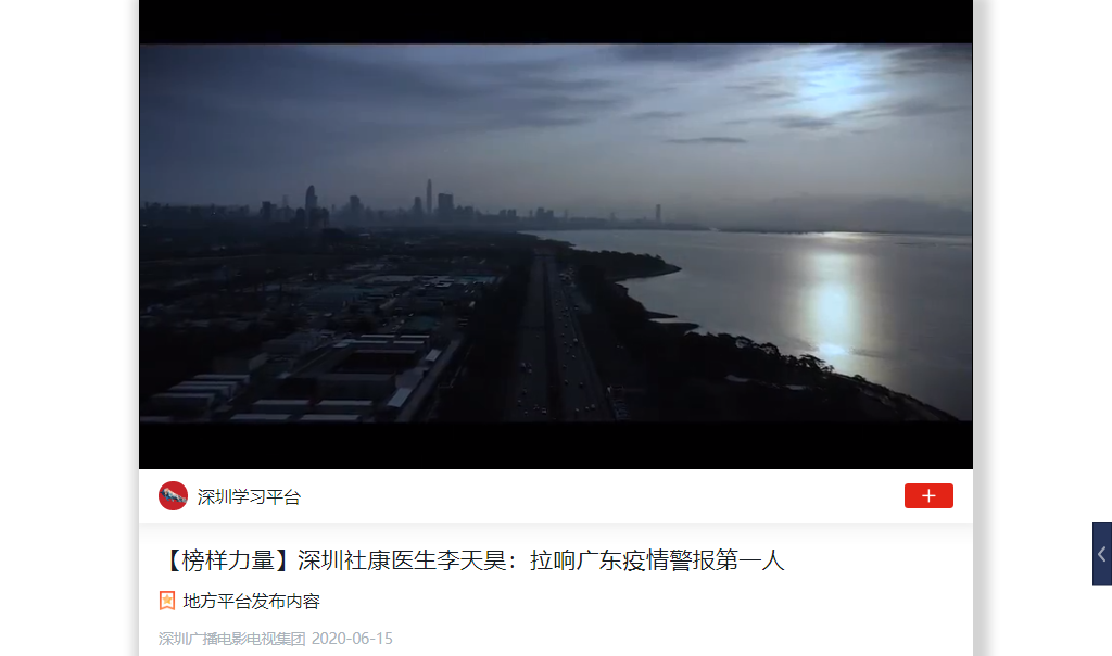 2020年1月8日,深圳市中医院学苑社康中心的李天昊医生 ,接诊了一位有发烧症状的市民,凭借职业的敏感性,他为深圳市疾控中心的介入提供了第一条线索,也为全省首例确诊患者的发现提供了第一条线索,拉响了广东战疫的第一声警报。