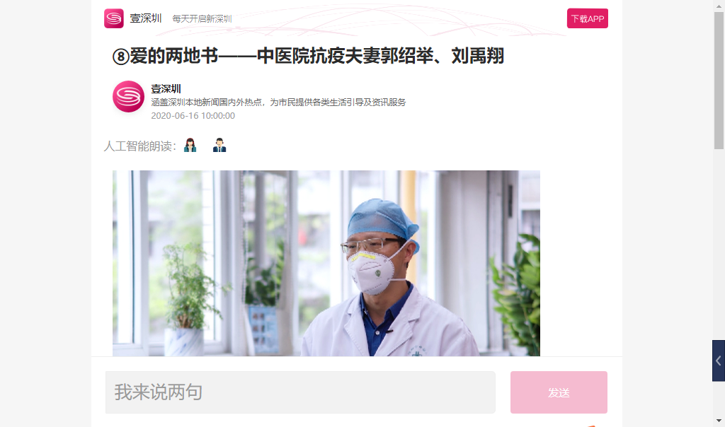 2月中旬,“战疫”持续焦灼,深圳第三批援鄂医疗队出征,他们是深圳派往湖北的首支中医医疗队,由深圳市中医院急诊科主任刘禹翔率队,奔赴武汉雷神山医院的疫情救治一线。你守护阵地,我守护家,这是一对医生夫妻分隔两地的抗疫爱情故事。