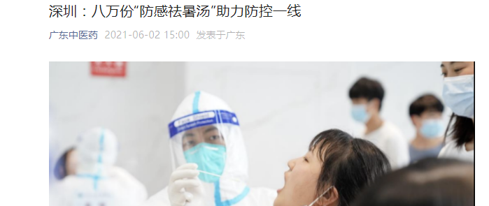 据深圳市中医院呼吸与危重症医学科主任陈生介绍,“防感祛暑汤”具有健脾益气,扶正解表、祛暑化湿的功效,是根据中医“治未病”理论,结合深圳当季的气候特点,特为奋战在抗击疫情一线的医护人员制定的,有益调整人体“内环境”,增强抗病能力,降低感染风险。截至6月1日,深圳市中医院已累计向全市各核酸采集队发放“防感祛暑汤”逾8万份。