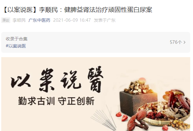 【以案说医】李顺民:健脾益肾法治疗顽固性蛋白尿案