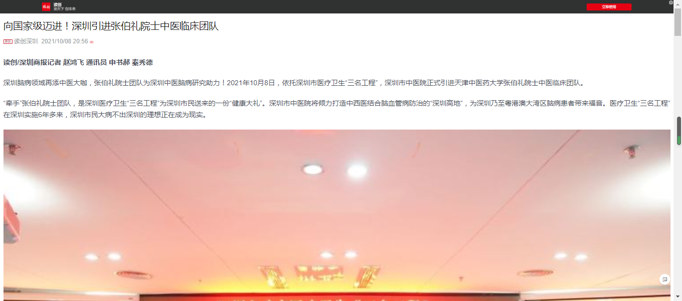深圳市中医院依托“三名工程”引进张伯礼院士团队,不仅为提高深圳市脑血管与神志疾病中医治疗能力引进了一位带头人、领路人,更将惠及深圳乃至粤港澳大湾区群众。