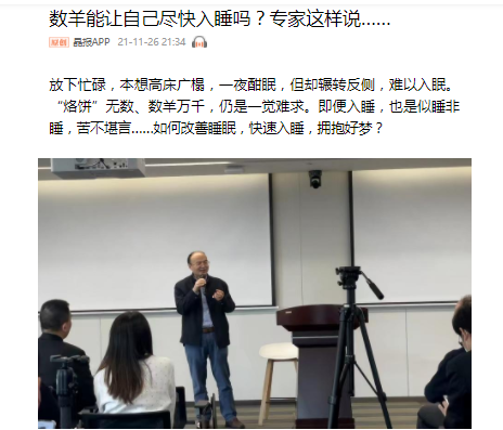 现场不少听众询问数绵羊能否让自己尽快入睡?熊国良表示,数绵羊是可以帮助睡眠的,但数的时候一定不要数到四,数“一只羊、两只羊、三只羊”,然后反复即可,也就是说使用重复、规律、机械动作也是可以让自己更好入睡的。